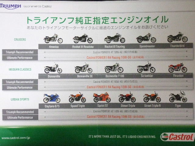 Triumphの推奨オイルがCastrolに変わった。